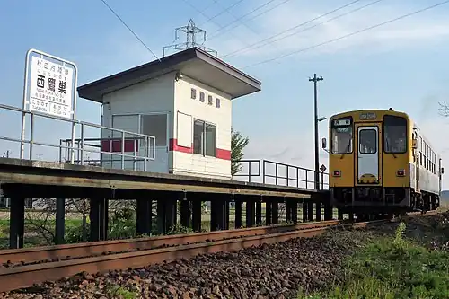 Nishi-Takanosu Station (西鷹巣駅, Nishi-Takanosu-eki) is a railway station located in the city of Kitaakita, Akita Prefecture, Japan, operated by the third sector railway operator Akita Nairiku Jūkan Railway.
