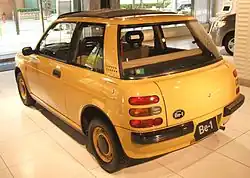 The Nissan Be-1 is a retro-styled two-door notchback sedan manufactured by Nissan for model years 1987-1988, and originally marketed solely in Japan at their Nissan Cherry Stores.