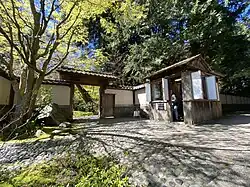 The Nitobe Memorial Garden features a fully functional Japanese tea house called Ichibō-an, surrounded by an outer roji tea garden with a waiting bench, and an inner garden.