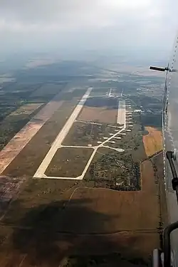 During 1964-67 the base began converting to the Tupolev Tu-22R (Blinder) and by 1967 it had 24 Tu-22s based here.[1] The reconnaissance variants were tasked with operations in Western Europe. In July 1969 two Tu-22 aircraft collided in mid-air; the crew ejected and the plane flew on unpiloted for 52 minutes, threatening the city of Nizhin before crashing 0.5 km from the city's railway station.[1] In November 1988 three Tu-22R were deployed to Mozdok to fight in Afghanistan, but returned to base a week later without seeing any combat.[1] Some Tu-22s were sent to Nizhyn for disposal, probably in the 1990s.[1]