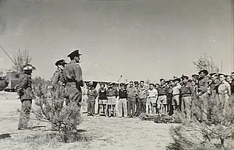 On 2 April 1942, No. 454 Squadron was re-raised at Blackpool in the United Kingdom in a reconnaissance/light-bomber role, from RAF personnel. Two months later, the squadron was transferred to Egypt, where the ground crews were sent to RAF Aqir to service aircraft from other squadrons; they moved to the Suez shortly after this. In late September, the squadron received aircrew and concentrated at Aqir again.[2] It proceeded to Iraq where it was equipped with Bristol Blenheims.[2] During this time the squadron was based at Qaiyara, and was employed in a training role, providing Blenheim refresher training for crews from other RAF squadrons.[1] In October, Wing Commander Ian Campbell took command.[3][4]