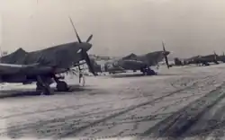 No. 8 Wing SAAF was a South African Air Force commanded formation during World War II that served in Italy, the Balkans and the Mediterranean Theatre. It was formed on 25 July 1944 [2] and consisted of Royal Air Force and South African Air Force squadrons under South African command. MAAF on 13 June 1944 asked the SAAF to reman immediately a new defensive fighter wing HQ to embrace No. 3 Squadron, No. 11 Squadron and No. 41 Squadron. By 22 June the request had been approved.[3] Col "Rosy" du Toit (promoted from Sweep Leader No. 7 (South African) Wing) opened the new office for the Wing in the SAAF Headquarters building in Bari on 16 July 1944. HQ 8 Wing would also take control of No. 87 Squadron RAF and No. 185 Squadron RAF[4] Lt-Col D.D. "Snowy" Moodie was appointed Sweep Leader of the new Wing.[5] On 25 July 8 Wing came under administrative control of Desert Air Force. 8 Wing Headquarters moved from Foiano to Borghetto on 10 September 1944. where the two RAF squadrons joined the Wing, together with RAF No. 53 RSU (Repair and Salvage Unit).[6] By the end of September, a it became clear that the end of the war was not at hand, the SAAF had two fighter-bomber Wing operating in Europe simultaneously for the first time (7 Wing and 8 Wing).
