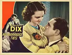 No Marriage Ties is a 1933 American pre-Code drama film directed by J. Walter Ruben and written by Arthur Caesar, H.W. Hanemann, Sam Mintz. The film stars Richard Dix, Elizabeth Allan, Doris Kenyon, Alan Dinehart and David Landau. The film was released on August 8, 1933, by RKO Pictures.[1][2][3]