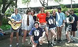 No Pants Day originated as an informal, end of semester, celebration for students at the University of Texas at Austin. After about 15 years of being celebrated every May, the Knighthood of Buh, a small campus comedy club, declared it a student holiday in 2000. After the 2003 celebration, The Austin Chronicle called it the city's "best local holiday".[3] The event gained traction in other states and several parts of Canada as well as France, Sweden, Australia, Finland, and Britain from their promotion.[4][5]