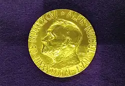 The Nobel Prize medal is a gold medal given to recipients of the Nobel Prizes of Chemistry, Literature, Peace, Physics and Physiology or Medicine since 1901. The medal for the Nobel Memorial Prize in Economic Sciences, given since 1968, is awarded with the aforementioned prizes.