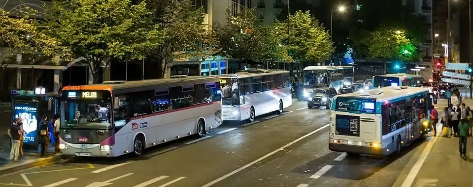Noctilien operates 53 bus lines over the whole of Paris and the Île-de-France region from around 12:30 a.m. when the rail network and the regular daytime bus service ends, until around 05:30 the next morning when they resume service.[2]