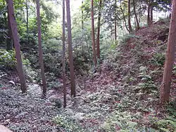 Noda Castle was abandoned around 1590, after Tokugawa Ieyasu relocated to Edo Castle. The site now is an overgrown forested area, with only a stone marker to commemorate the location.