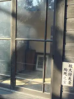 Nogi and his wife Shizuko committed suicide by seppuku shortly after the Emperor Meiji's funeral cortege left the palace.[14] The ritual suicide was in accordance with the samurai practice of following one's master to death (junshi).[15] In his suicide letter, he said that he wished to expiate for his disgrace in Kyūshū, and for the thousands of casualties at Port Arthur. He also donated his body to medical science.[4]