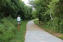 The Noonday Creek Multi-Use Trail in Cobb County, Georgia is a seven-mile (11 km) continuation of the Mountain to River Trail in Kennesaw. Its southwest end is at Kennesaw Mountain National Battlefield Park, Old 41 Highway and Stilesboro Road.[1] Much of the trail runs alongside Noonday Creek. Noonday Creek Trail connects Kennesaw Mountain National Battlefield Park to Town Center Mall, and its north eastern trailhead is at 3015 Bells Ferry Road, Marietta, GA 30066.