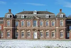 The architects of the schloss and its complex of outbuildings were Gottfried Laurenz Pictorius, Peter Pictorius the Younger (from 1706) and Johann Conrad Schlaun, from 1724. The taller corps de logis is flanked by symmetrical lower wings, one of which contains the chapel. The wings are rigorously symmetrical and enclose the cour d'honneur in a U shape. Dutch precedents, such as the palace Het Loo near Apeldoorn, make their presence felt, but the sandstone facing of Schloss Nordkirchen is purely Westphalian.