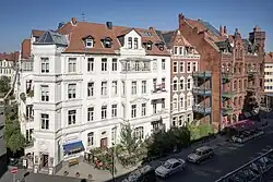 It was originally characterized by small factories and a big railway freightyard closed in 1996. During World War II large parts of the district were destroyed. Today, due to the university and cultural clubs, this district is a preferred residential area for students and people of immigrant background. An almost village-like atmosphere exists around the Luther Church (see photo) where a lot of pubs and small shops resides. Many alternative project groups have settled here and also numerous communes live in these houses.