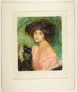 - La Femme au Masque, after Edmond Aman-Jean, etching, drypoint and aquatint in color