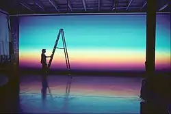 Though the sky was his "model" it was not his intention to create landscapes or sunsets, nor to imitate nature, but to parallel the abstraction of light in paint, to correlate palette and sky. He found that none of the different theories of color were quite related to nature, so he began putting color into what he felt was their natural sequence. He began by mixing his own basic, primary or "parent" colors and from that eventually mixing colors according to his experience and ideas about how one color can become another color can become another color, etc. until it rounded the whole spectrum.
