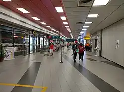 The public transport system in Singapore was designed to connect the North-East Region to the city centre, with Mass Rapid Transit (MRT) stations in each town centre.[28] There is also a number of bus stops and Light Rail Transit (LRT) stations which connect towns within the region. As of 2015, 59.5% of the working population aged fifteen and older use public transport regularly to get to work.[12] The North East region also has one airport: Seletar Airport. The airport was formally a military airbase, but is now owned by the Singapore government and operated by Changi Airport Group.[29] It is mostly used for flight training, private aircraft and chartered flights.