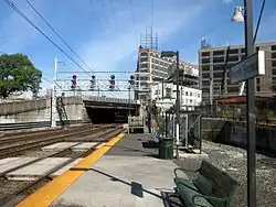 On April 5, 1992, SEPTA began their 18-month-long RailWorks project, which included two multi-month shutdowns of the Reading mainline from Wayne Junction to Market East for emergency bridge repairs. As part of the project, North Broad Street and Temple University stations were completely rebuilt.[12] Within two weeks of the closure, demolition of the old platforms was under way.[13] The rebuilt station has two side platforms serving only the outer tracks, which were chosen to straighten the curved tracks around the former island platforms and thus allow higher speeds through the station for express trains. The pedestrian tunnel was closed and filled; access to the platforms is via ramps from North Broad Street.[14] The station, renamed as North Broad, reopened at the end of Railworks on September 5, 1993.[15]