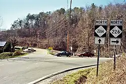 North Carolina Highway 26A (NC 26A) was established around 1947 after NC 26 was rerouted on the more direct route between Woodlawn and Gillespie Gap, through the Cox Creek valley.[9] In 1961, NC 26A was renumbered to NC 226A, in lockstep with NC 226; justification for change was to avoid confusion with I-26.[6]