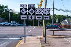 | 11.5 | 18.5 | South end of US 52 and east end of US 74 overlap North end of NC 109 overlap | ||||||