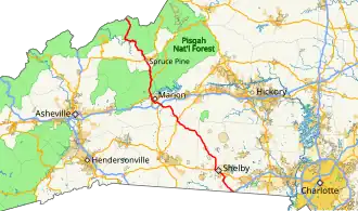 | | 14.3 | 23.0 | Shelby Bypass – Asheville | ||