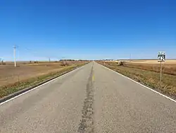 ND 42 begins at a junction with ND 50 near the small town of Corinth, in northern Williams County. After going through town, it enters Divide County, and meets ND 5 in the county seat, Crosby. For 8 miles (13 km), ND 42 runs concurrently with ND 5 from Crosby to just south of Ambrose. ND 42 turns northward to end at the Canadian border.[3] The roadway continues northward beyond the Ambrose–Torquay Border Crossing and port of entry as Hwy 350, 16 kilometres (9.9 mi) south of Torquay, Saskatchewan.[4][5]