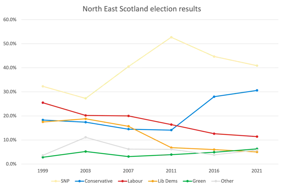 - ^ "Elections 2021: North East Scotland [region],". BBC News. Archived from the original on 26 May 2021. Retrieved 8 May 2021.