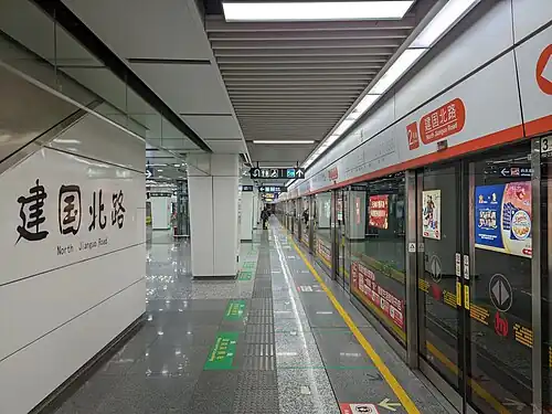 North Jianguo Road (simplified Chinese: 建国北路; traditional Chinese: 建國北路) is a transfer station on Line 2 and Line 5 of the Hangzhou Metro in China. It is located in the Gongshu District of Hangzhou.[1][2]
