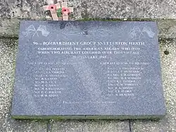 On 29 January 1945, 18 American servicemen died when two aircraft collided over the village. The airmen belonged to the 96th bombardment group which was based in Snetterton, Norfolk, during the Second World War. A memorial, designed by Richard Vere,[23] now stands in North Lopham to commemorate the incident.