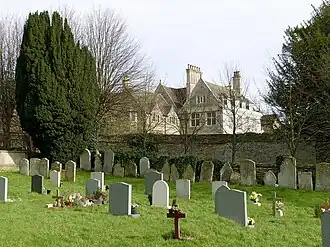 ![]() The hall from the churchyard of St John the Baptist Church | |
