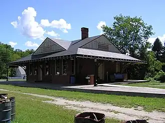 North Pemberton is a disused railway station located in Pemberton Township, Burlington County, New Jersey, United States. The station was built in 1892 by John S. Rogers and added to the National Register of Historic Places on May 23, 1978, for its significance in architecture and transportation.[1][3] The station became inactive in 1969 when rail service between Pemberton and Camden ended. The Township of Pemberton now owns the station and operates it as the North Pemberton Railroad Station Museum, a museum of regional history and a Welcome and Information Center for both the Pinelands and the Pemberton area.[4]