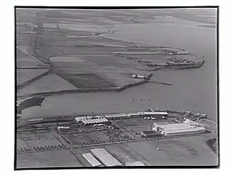 Industrialisation in the North Shore area commenced in 1899, when a meat freezing works was opened.[7] The mouth of Cowies Creek was excavated to become Corio Quay from 1909,[8] with the creation of Lascelles Wharf to the north in later years.