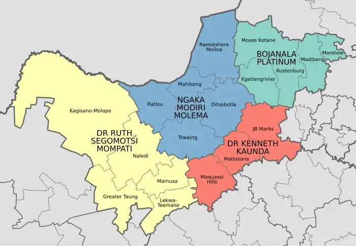 - ^ "Dr Ruth Segomotsi Mompati District Municipality". Municipalities of South Africa. Retrieved 24 April 2024.