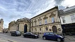 As the county council's responsibilities grew, it needed more office space than was available in the converted house which formed the main part of County Hall. The council acquired a former gaol (built 1791–1794) immediately south-east of the Sessions Room and County Hall, and converted that to be offices.[42] In 1939 the council built a large neo-Georgian office building to the east of the old gaol, linked to the older buildings by corridors to the rear. The new building was called County Offices and had its main frontage onto Guildhall Road.[43]