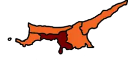 ![]() Map showing the winners by the districts of Northern Cyprus. Orange denotes districts won by Eroğlu, while dark red denotes districts won by Talat. | ||||||||||||||||
