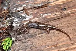 The northern pygmy salamander (Desmognathus organi) is a terrestrial species of salamander in the family Plethodontidae and genus Desmognathus. Along with the southern pygmy (D. wrighti) and the seepage salamander (D. aeneus), these are some of the smallest salamander species in North America and can be found in higher elevations in the southern Appalachians.