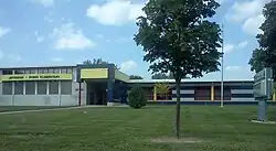 The Lincoln and Jefferson-Barns Elementary Schools were constructed roughly in the center of each half of the subdivision. Both school buildings are single-story brick structures, with wide flat roofs and a T-shape construction to accommodate both daycare and classrooms. Both have a taller multi-purpose room. Lincoln elementary was constructed with a longer classroom wing, although both schools have had additions constructed at some point. Both elementary schools are closed. The Lincoln Elementary School building was torn down in 2016. The Jefferson-Barns building is now the home of the Jefferson-Barns Community Vitality Center.[2]