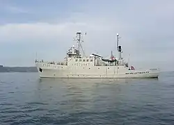 The Ministry of Fisheries appointed a committee in 1958 to consider the organization, and it concluded that the inspections should be a military affair. This led to the establishment of the Military Fisheries Surveillance, which consisted of three squadrons. Two were subordinate to the Navy Commands in Northern and Western Norway, respectively, while the third, serving the Oslofjord, was subordinate to the Oslo office.[60] Meanwhile, work started on planning a new class of patrol vessels,[61] which resulted in the commissioning of the Farm-class patrol vessel in 1962 and 1963.[62] They were supplemented in 1964 by the used civilian Andenes-class patrol vessels.[63]