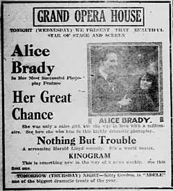 Advertisement of the movie shown with the main attraction Her Great Chance