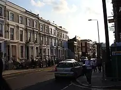 Westbourne Grove is a retail road running across Notting Hill from Kensington Park Road in the west to Queensway in the east, crossing over Portobello Road. It was noted as "fashionable" and "up-and-coming" from the 1990s[36] since then it has attracted many designer label outlets as well as independent and chain retailers.[37]