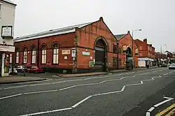 ![]() Tram passing Nottingham Victoria Railway Station | |