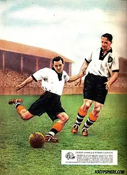 By 1935, Notts County were back in the Third Division South,[38] where they remained at the outbreak of World War II; once again, competitive football was suspended.[39] In 1947, after the league had resumed, and whilst still a third tier club, Notts paid £20,000, then the British transfer record, to sign England international forward Tommy Lawton.[40] Lawton's presence resulted in a significant increase in Notts County's crowds. A home match with Swansea Town on Boxing Day 1947 was attended by 45,116 spectators, with an estimated 10,000 locked outside.[41] Over the next three seasons, Lawton forged a productive goalscoring partnership with Jackie Sewell,[42] culminating in the Magpies winning the Third Division South title in the 1949–50 season. The championship was secured with a 2–0 home win over Nottingham Forest played before 46,000 spectators.[43]