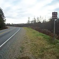 Route 316 is a collector road in the Canadian province of Nova Scotia. It is located in Antigonish County and Guysborough County, connecting Lower South River at Highway 104 with Half Island Cove at Trunk 16.