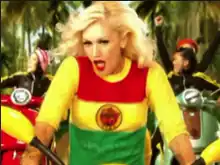 The song's accompanying music video was directed by The Saline Project and was shot in Puerto Rico and Jamaica.[23] The Puerto Rico scenes were shot a day after Stefani's concert in the city, as part of The Sweet Escape Tour, on July 19, 2007. Many parts of the video were shot in a studio, including scenes of Stefani riding a motorcycle in front of a green screen.[24] The video premiered on MTV's Total Request Live on September 4, 2007.[25]