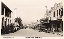Nowra Town Hall was built in 1948 and is in the Central Business District. This district contains many services, including banks, health services and a library.
