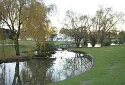 A major landmark in the area is the house Bundanon, which renowned Australian artist Arthur Boyd and his wife Yvonne donated to the people of Australia in 1993 along with an adjoining property that had been previously owned by Boyd's brother-in-law, the equally famous Australian artist Sidney Nolan.[7][8] Bundanon began as a single-storey weatherboard structure built around 1840. In 1866, a two-storey sandstone house, made of locally quarried stone, was built immediately in front of the original weatherboard house. The sandstone house features timber verandas and is now listed on the Register of the National Estate.[9]