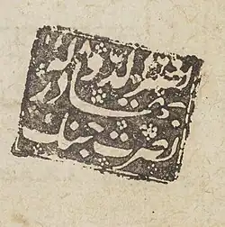 Nuṣrat Jang (Persian: نصرت جنگ), properly ʻAbd al-Vahhāb Khān Shīkūh al-Mulk Naṣīr al-Dawlah Nuṣrat Jang Bahādur (ca. 1724–1801) was the fourth son of the Nawab of Arcot, Anvār al-Dīn Khān Bahādur (d. 1749).[1] He was a collector of manuscripts, examples of which are in the John Rylands Research Institute and Library and the British Library.[2] With rise of Hyder Ali (r. 1761–1782) Nuṣrat Jang's collection passed to that ruler and thence to Tipu Sultan (r. 1782–1799).