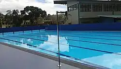 The swimming pool at the college, opened in 2015, is 25 m (82 ft) in length, 2 m (6 ft 7 in) in depth, and has eight lanes.[19][20][21]