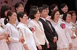 • At 2017 International Nurses Day celebration, the first female President Tsai Ing-wen conducted a "passing of the torch" ceremony with leaders of the Taiwan Union of Nurses Association and the Taiwan Nurses Association. She honors nurses recognized for outstanding professionalism and service as well as over 2,200 nurses at the event who has been working for over 25 years. President Tsai expressed deepest respect and gratitude for their contributions to the health of people in Taiwan, and stressed the government has responsibility to increase benefits available to nurses and achieve more reasonable nurse-to-patient ratios and ensure friendlier workplaces. She also praises Taiwan's long tradition of providing international medical aid with the participation of nurses and emphasizes the needs to interact with other countries to share experience in nursing care. She emphasizes the nursing profession's concern for global health is a shared value for all nations.[6][7][8][9]