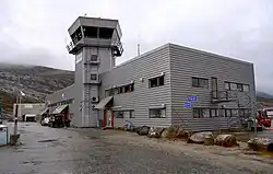 The new terminal building and accompanying apron was opened in summer 2024, which introduced security checks for the first time ever at Nuuk Airport. Subsequently, the old terminal and control tower were demolished in September 2024, as they were located too close for the new runway operations.[32] The new control tower was commissioned in the same month.[33] The only parts of the existing airport that exist after the expansion are Air Greenland's maintenance hangars, the airport's old service building and the original apron. The original runway was removed, rebuilt and extended.