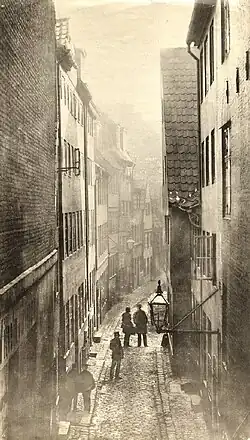 Peder Madsens Gang ("Peder Madsen's Corridor"), a narrow alley with tenements for the very poor, was for centuries located at the site where Ny Østergade runs today. It took its name after Peder Madsen, a local representative and alderman of the Community Representative's Guild, who constructed some of the buildings. Later in the century, it was already described as the worst slum in the city. It was entered through a gate in the Svaneapoteket pharmacy on Østergade and at Grønnegade in the other end.[1]