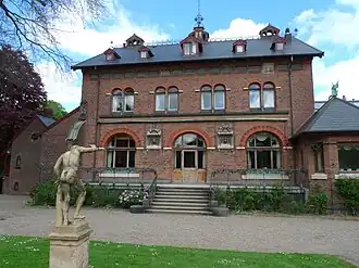 The Carl Jacobsen House was completed in 1892 to designs by Hack Kampmann. The adjacent Carlsberg Museum (No. 105) was built for his private art collection which was later moved to the Ny Carlsberg Glyptotek. The small round guardhouse at the corner with Valby Langgade, which guarded the entrance both to Jacobsen's villa and the brewery, is from 1905 and was also designed by Hack Kampmann. It is known as the Yeast Tower since it was possible for private customers to buy surplus fresh yeast from the guard.