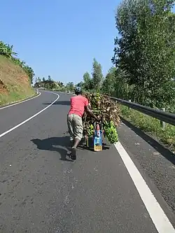 In Nyabihu District roads condition varies from very poor to good. About 66.0% of the roads are very poor, 25.3% are poor and 8.2% in fair condition. Only 0.5% of the roads are in good condition. Most of these roads need to be rehabilitated while others require maintenance. The 2013 Development Plan of the District indicates that Nyabibu District has 290 km of roads of which 88% are dirt roads and 12% is paved. The District has access to three paved roads which are Kigali- Rubavu, Mukamira – Muhanga – Huye – Burundi or Huye- Rusizi, Mukamira – Ngororero – Muhanga – karongi. It has also indicative feeder roads that are regularly in poor condition due to the high mountains and heavy regular rainfall. However, in some sectors, people walk more than 30 minutes to access the nearest road network. The poor quality and lack of roads connecting the supply area and the collection center is a major concern. During the rainy season, some of these roads become almost impracticable, while during dry season, there is too much dust that affects milk quality. In addition, the prices offered to farmers and ranchers by intermediate traders are insignificant and therefore decrease their income.[3]
